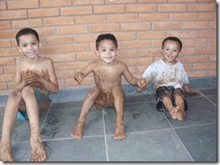 Sábado segue chuvoso. Meninos brincam (eufemismo para ‘fazem a zona’) na garagem. Mãe diz a eles que NÃO saiam na chuva.